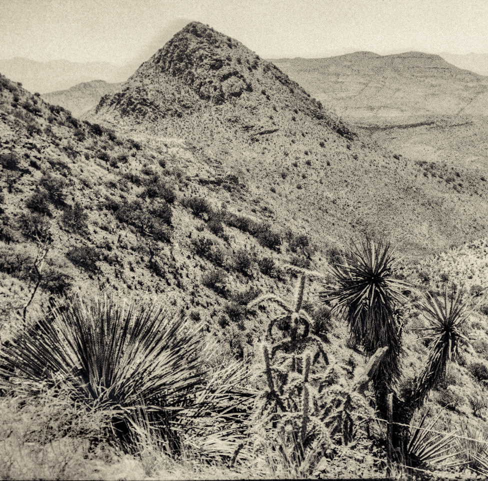 Julián Herrera is a Marfa-based photographer and multidisciplinary artist whose work is rooted in the landscapes of Big Bend and the high desert of West Texas. Working primarily in film, he embraces a tactile, hands-on process that mirrors the geological time scales he often contemplates. Through an interplay of landscape and philosophy, Herrera’s work reflects on humanity’s brief presence within ancient terrain, finding both humility and strange comfort in deep time.